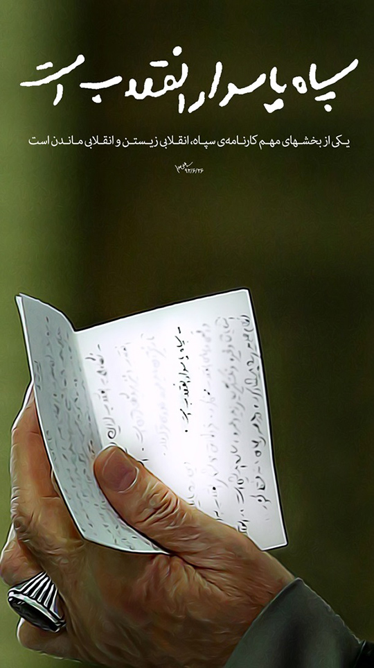 دست خط رهبر انقلاب در دیدار سپاهیان/سپاه پاسدار انقلاب است