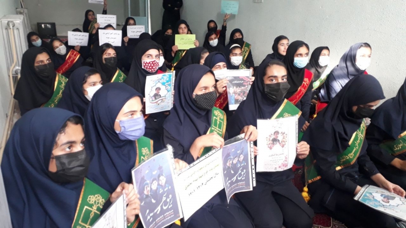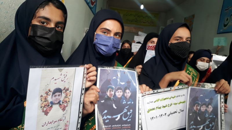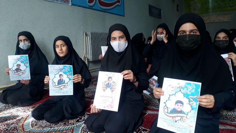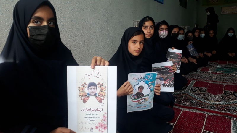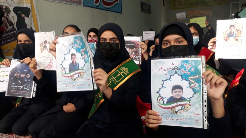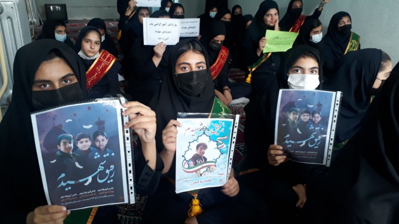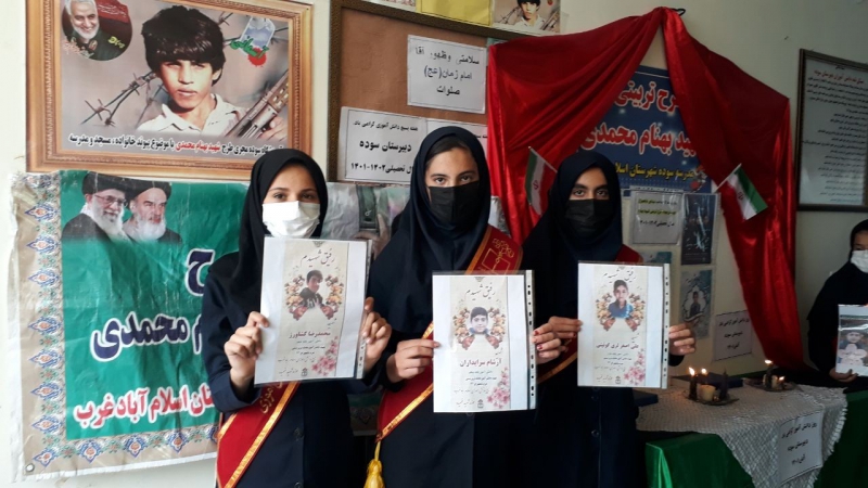 دانش آموزان اسلام آبادی با در دست گرفتن تمثال شهدای دانش آموز انزجار خود را از #شیطان_بزرگ (آمریکا) و ایدادی آنها در منطقه نشان دادند.